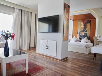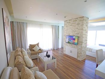 Плюсы: Нам очень-очень понравилась отель. Вопше супер. Сервис 👍👍чистота. Расположение прям рядом море. Территория чистый. Питание отличный. Сотрудники вежливо. Особенно Мустафа. Каждый день он обслужил нас. Мы с детми были. Номер чистота. Большой спасибо Всем🙏🏻🙏🏻🙏🏻🙏🏻 Доктор Мустофе. Когда дочка заболела он сразу осмотрел, и сразу назначение дал. И еще мы благодарна Менеджер ht.kz. Жумабаева Арайлым.
