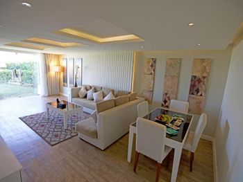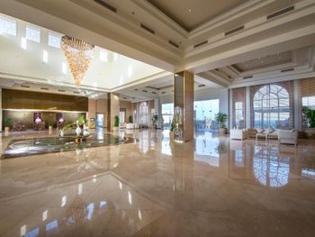 Плюсы: Отдыхали в апреле 2022, отель оправдал наши ожидания. Красивая, ухоженная территория, много цветов, зелени. Большой светлый холл, всегда играет приятная легкая музыка ,приятная атмосфера. Заселили быстро, номер достался с видом на море. По питанию было и обещанное разнообразие, и достаточное количество на всех. Обилие мясных блюд-были и жаренные утки, и индейки, курица, говядина, из морепродуктов креветки, кальмары, крабы, в общем питание удовлетворило на все 100%. По вечерам на ужинах живая музыка, что тоже было очень приятно.