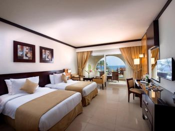 Плюсы: Очень красивая территория отеля ! Расположения Недалеко от аэропорта, что очень важно после долгого перелета. Отзывчивый персонал, 24 часа улыбаются. Красивое место с пирса для. снорклинга. Мы взяли два номера , один с гарден вью и второй номер с выходом на бассейн , с видом на море . Вид красивый слов нет . Территория чистая , ухоженная.. Баристы молодцы ????????????с утра до ночи наливают , даже при 40 градусной жаре им не почем улыбнуться и спросить как у нас дела. Особенно хотим отметить бармена Рошит молодец парень ????????очень вкусно и от души делает коктейли. А также Ахмед на ресепшене работает всегда все объяснит и поможет.