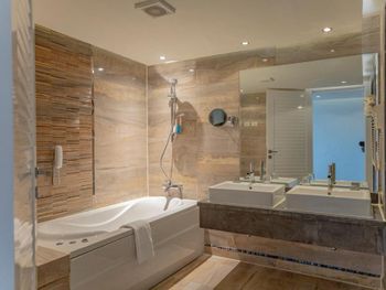 Плюсы: Очень красивая и ухоженная территория, приятно гулять по ней, из-за каскадной местности данного района подойдёт не всем, много лестниц, но есть автобусики которые часто ходят и быстро довезут вас куда нужно. Разнообразная и вкусная еда, на всех завтраках/обедах/ужинах есть несколько видов мяса, всегда белая рыба. На обед и ужин жарят креветки. Несколько видов фруктов, йогурты в упаковке, удобно взять на перекус и детям. На завтрак 5-6 видов фрешей. Персонал вежливый и шустрый, несколько раз была необходимость обратиться на ресепшн, реагировали и исправляли все быстро.