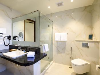 To ensure a pleasant stay, pillow menus, 39-inch flat-screen TVs can be found in all rooms. Coffee/tea making facilities and a dining area are included.
