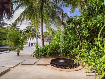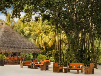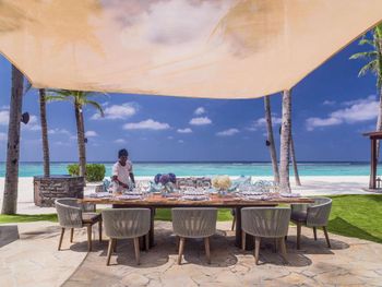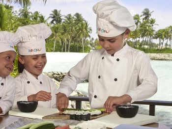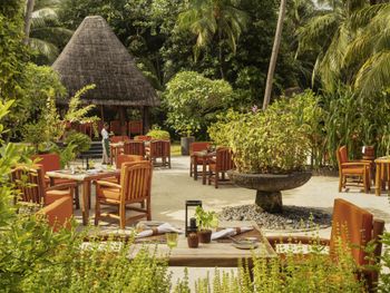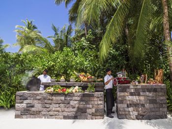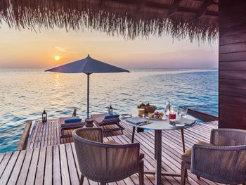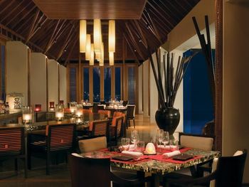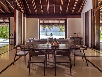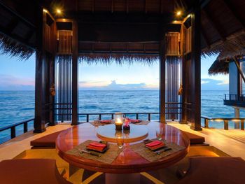 В построенном над водой ресторане Tapasake подают блюда современной японской кухни, а в ресторане на пляже Fanditha — блюда ближневосточной кухни и шампанское. В распоряжении гостей также ресторан Reethi, в котором готовят блюда средиземноморской кухни. Помимо этого, гости могут посетить бар Rah и в любое время суток заказать доставку еды и напитков на виллу.