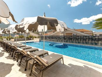Это комплекс просторных апартаментов, с современной мебелью и полностью оборудованной кухней, что особенно удобно для семей с детьми. Он расположен в тихом районе, но при этом недалеко от пляжа и магазинов. На территории есть бассейн, зона для отдыха и небольшая игровая площадка для маленьких туристов.