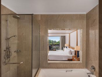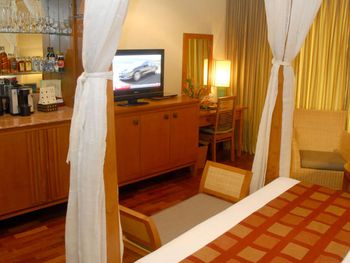 В роскошных номерах с деревянным полом в распоряжении гостей кондиционер, спутниковое телевидение, мини-бар и собственная ванная комната с душем и ванной.