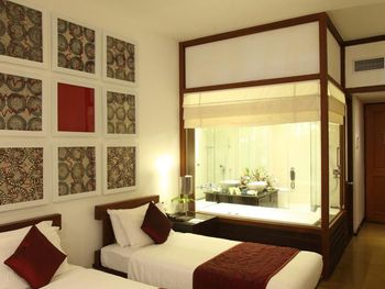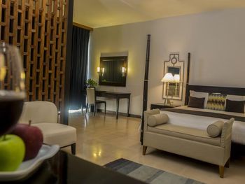 Плюсы: Отель очень колоритный, большой и красивый. Понравились бассейны, территория( она просто огромная), уединение. Номер очень просторный, есть все необходимое (кроме фена). Мы брали питание завтраки ( все очень вкусно , большой выбор блюд). Советую брать тип питания пансион или полный пансион, так как за пределами отеля нет ресторанов . Те, что показывает карта - закрыты. Приходилось каждый день ужинать в отеле и платить 7000 рупиев ( за двоих).