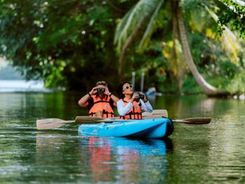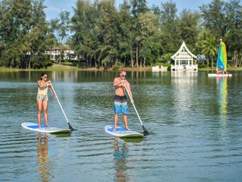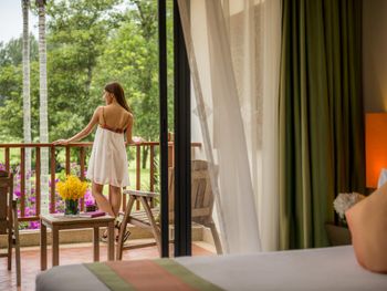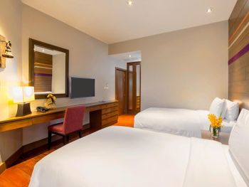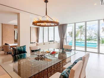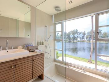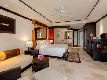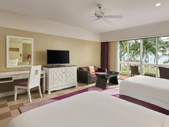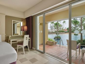 Плюсы: Местоположение отеля отличное! Уединенное тихое место. Пляж выше всяких похвал: песок мелкий, белый, чистый. Заход в море пологий, идеально для детей. Море тёплое, чистейшее, никаких водорослей, прозрачное. У отеля свои бесплатные шезлонги, зонтики, полотенца пляжные выдают, тоже бесплатные. На пляже предлагают напитки и еду местные жители, дешевле, чем в отеле. У отеля большая, зелёная, ухоженная территория. Есть лагуны, где можно кататься на катамаране, каяке, падл борде (бесплатно). В лагуне живёт варан, встретили его, когда грелся на солнышке) природа в отеле везде: много птиц, зелени, цветов. Очень уютно и красиво. Огромный бассейн с несколькими отделениями: для спортивных игр, речка, два отделения с джакузи. Детям ставят надувную горку или натягивают дорожку из пенопропилена, по которой можно пробежаться по воде. Есть что-то типа детской комнаты, где можно оставить ребёнка. Там небольшая площадка в тени и разные занятия для детей. Сын ходил на мастер-класс по укрошению кексов (300 бат). Ему понравилось. Так же есть мастер-класс по украшению пиццы. В самом отеле все соответствует описанию на сайте. Брали проживание с завтраками. Очень рекомендую так делать: завтрак очень разнообразен. Несколько видов блюд из яиц, оладьи, йогурты, венские вафли, французские гренки, китайская еда, индийская еда, несколько видов сока, свежевыжатый апельсиновый сок, фрукты, овощи. Короче, на любой вкус! У бассейна есть небольшой ресторан, там можно с 12-17 перекусить, в основном фаст-фуд, но есть и местные блюда. Порции большие. Номер был двухуровневый около лагуны: гостиная (внизу есть отдельный санузел), кухонный уголок, две спальни (в одной душевая, в другой ванная комнаты). На 3 этаже веранда с обеденным столом и двумя шезлонгами. Здесь тоже есть уличный душ. Описание номера и фото на сайте соответствуют действительности. Убирают номер каждый день, приносят питьевую воду. Можно брать сколько нужно воды, нет каких-то ограничений. Ходили с дочкой в СПА, очень понравилось.