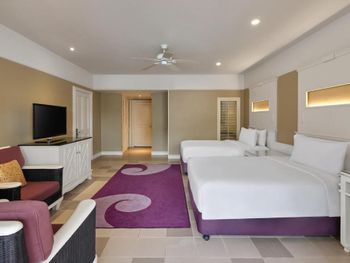 Плюсы: Отель очень понравился - прекрасная зеленая территория, хорошие рестораны, прекрасные пляж и море. Удобная белоснежная постель, укомплектованная всем необходимым ванная, хороший завтрак с большим ассортиментом фруктов. Вечером горничная зажигает аромосвечу - мило и приятно. Бронировали номер с выходом к бассейну - это было очень удобно и к тому же у данного корпуса хорошее местоположение относительно всей инфраструктуры отеля. С удовольствием вернусь в этот отель.