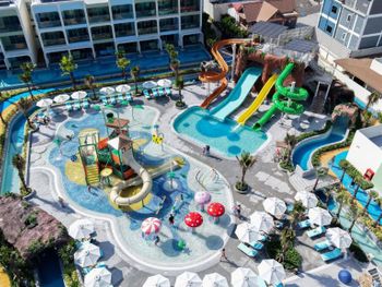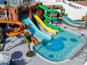 Плюсы: При заселении сделали апгрейд, при выставлении дали поздний выезд, отличная большая территория, всё чисто, больше подходит для семей с детьми, насчитала девять бассейнов на территории, пляж шикарный