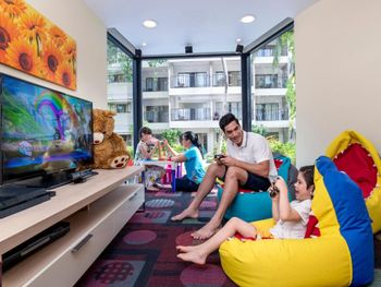 - Тихий и спокойный, семейный, в номерах все что нужно имеется, есть зал-кинотеатр - транслируют фильмы и мультфильмы