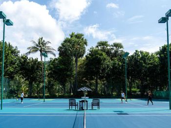 В числе удобств курортного отеля, подходящего для семейного отдыха, 8 ресторанов на любой вкус, полностью оборудованный круглосуточный фитнес-центр, 2 теннисных корта и 2 корта для сквоша. К услугам гостей 5 открытых бассейнов с лагунами, пальмами и двухуровневой водной горкой, детский клуб с батутом и большой банкетный зал без колонн. В спа-центре Pullman с 15 деревянными виллами открыт салон красоты.
