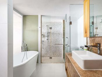 Во всех просторных номерах есть собственный балкон с великолепным видом на Андаманское море, тропический сад или лагуну с лотосами. В номерах есть большая рабочая зона, комфортабельный диван, мини-бар и сейф. В распоряжении гостей телевизор с плоским экраном и элегантная ванная комната с отдельными душем и ванной.