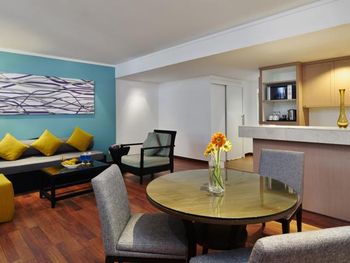 Курортный отель Radisson Suites Phuket — единственный курортный отель класса люкс в Камала-Бич. Гостям предлагается размещение в стильных и современных номерах с 1, 2 и 3 спальнями, просторными гостиными и балконами с видом на бассейн в форме тропической лагуны в потрясающем районе Камала-Бич на острове Пхукет, всего в двух шагах от тихого пляжа Камала и всемирно известного бара Café del Mar.