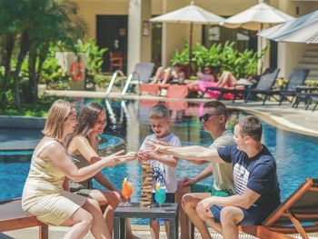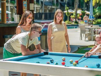 Позагорайте около бассейна в форме лагуны, а малыши прекрасно позабавятся в детском бассейне с великолепной водной горкой. Примите участие в дневных и вечерних развлекательных мероприятиях в клубе Siam Adventure. Посетите один из трех наших ресторанов, где вам предложат настоящие блюда тайской кухни или посмотрите прямую трансляцию матча в спорт-баре Champions, где транслируются спортивные состязания со всего мира и различные популярные международные матчи.