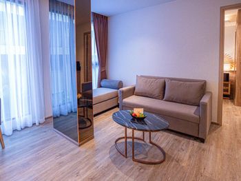 Большой просторный номер, софа раскладывается, удобно у кого 2е детей не старше 12 лет.