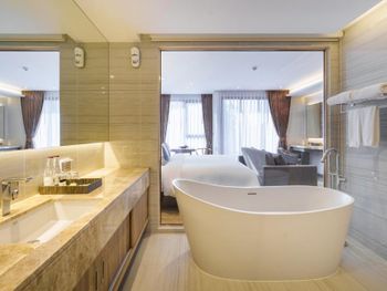 Не понравилось: Персонал не говорит и не понимает на английском языке. Много раз нужно было уточнять, переспрашивать информацию. Ужасная уборка, не оставляют полотенец, мыла. Пришлось писать официальные обращения на ресепшн - только тогда исправили ситуацию (извинились, объяснили что у них слишком мало персонала). Странная схема выдачи полотенец для бассейна - расписываешься на бумажке сколько полотенец ты взял - бумажки потом нет (напоминаю что говорим про 5*гостиницу ...). К сожалению уровень сервиса в целом тянет на 3*. Соответственно соотношение цена-качество также не оправданы. Так как гостиница совершенно новая - с прекрасными большими номерами и инстаграмным дизайном потенциал у неё есть - но только при вложений всех сил сейчас на подбор персонала.