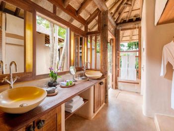 Элегантные виллы курортного спа-комплекса Naka Island оформлены в современном стиле. В числе удобств — кондиционер и беседка под открытым небом с небольшим диваном. Все номера оснащены телевизором с 32-дюймовым плоским экраном и DVD-плеером. Ванная комната имеет выход на улицу. В распоряжении гостей отдельный душ и ванна на свежем воздухе. Бесплатно предоставляются газеты и вода в бутылках.