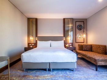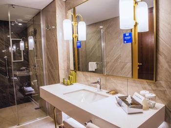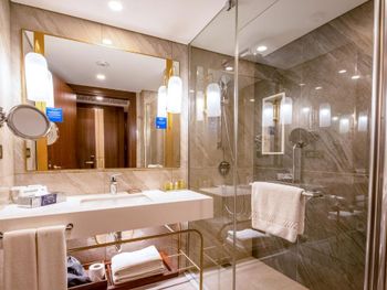 Плюсы: Мы останавливались в отеле сначала на три дня , потом на обратном пути на один. Если судить по первой остановке,то все было отлично. Но во второй раз нам дали почему то номер для инвалидов🤷🏿♂️ в ванной в отличие от первого раза не было мочалки,зубных щёток ,да и в принципе ванная была не удобная,так как предназначена для людей с ограниченными возможностями. При этом дверь на балкон даже нам было открыть и закрыть проблематично. Зачем давать такой ужасный номер если отель полупустой , мы не поняли. Заезжали мы в 10 вечера, номер был оплачен. Мы устали и не стали просить заменить, но потом уже пожалели , тк Хилтон выбираем из-за комфорта , а когда в душе нет даже полочки куда поставить шампунь и болтается тряпочная занавеска, то начинает раздражать . В первую нашу поездку номер был отличным , в ванной было очень комфортно и все принадлежности были.