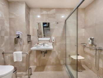 Начнём с заселения: эконом номер для некурящих - это темная конура на 10 этаже, 2/2 метра, окно маленькое, грязное, не открывается. То есть номер никогда в жизни не проветривался. Только шумный кондиционер. Балкона нет, сушилки нет. где сушить вещи? Я первый раз за всю свою жизнь путешественника столкнулась с проблемой что просто некуда вешать вещи после моря. Раздолбанная душевая перегородка. Зато в номере есть утюг!!! Вы издеваетесь? На букинге не было ни одного фото, похожего на данный «номер».