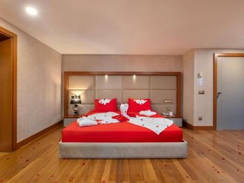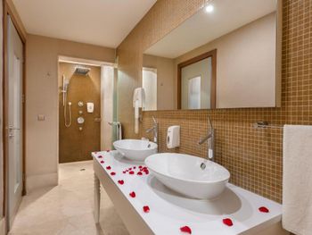 Хотелось бы побольше официантов на раздаче в ресторане. Ну а то что эти официанты кладут малюсенькие порции, приходится выпрашивать каждый лишний кусочек арбуза или сыра или листик салата - это уже гигантский минус. Номер в отеле не такой уж дешевый (180 евро за ночь на двоих), а тут отель пытается сэкономить пару лир ..
