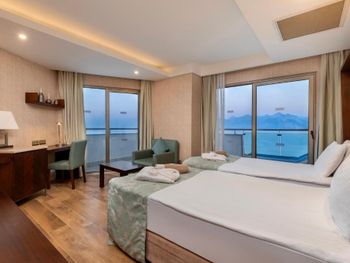 Плюсы: Пляж моей мечты практически - никакого песка, камней на входе-выходе, мало детей, чистота, лежаков достаточно всегда было, вид с пляжа на горы, просто загляденье, два больших понтона, где можно полежать, если не хочется выходить к лежакам. Большой номер, балкончик с освещением, в ванной комнате и ванна и душевая кабина, довольно просторная, много полочек. Сауна, хамам, турецкая баня, бассейн закрытый и открытый, все это до 22 вечера - красота! Персонал отзывчивый, приветливый. Сам отель отлично расположен, большой, красивый, особенно холл, и все фотографии соответствуют действительности.