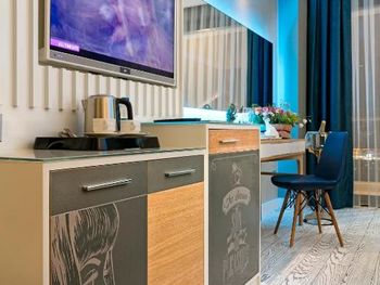 Во всех номерах установлены телевизоры с плоским экраном. Из некоторых окон видно море или горы. Предоставляются халаты, тапочки и бесплатные туалетно-косметические принадлежности.