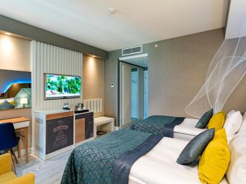 Плюсы: Отель понравился, питание отличное и разнообразное! Напитки и мороженое! Дети в восторге! Горки и наличие крытого бассейна очень порадовали!