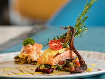 Ежедневно в ресторане подают завтрак, обед и ужин. В баре предлагают различные напитки.