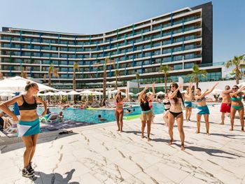 На территории отеля есть бассейн, детская площадка, вечером анимация для детей и взрослых. Каждое утро проводилась водная гимнастика,водная иога, водное поло и д т.