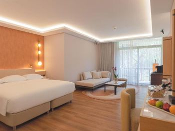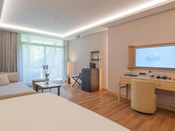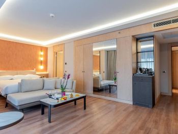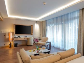 Плюсы: Очень большая ухоженная территория. Вкусная еда, заботливый персонал, большой номер с выходом на трассу, на пляже всегда были свободные лежаки. Отдельное спасибо менеджеру Сабине за организацию отдыха для нашей семьи.