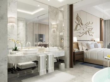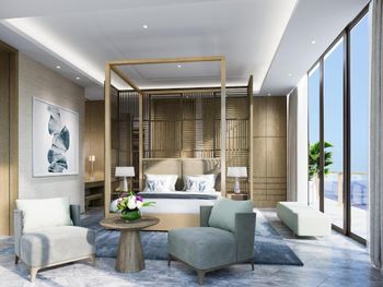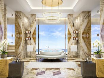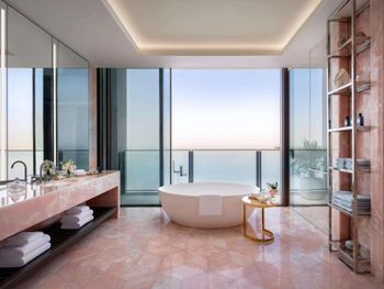В распоряжении гостей курортного отеля Atlantis The Royal номера, люксы и фирменные пентхаусы, из которых открывается вид на Аравийское море и остров Пальма Джумейра. В числе удобств — собственные балконы, террасы и частные бассейны.