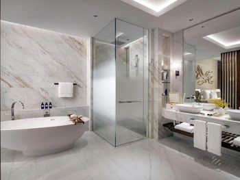 Насладитесь великолепным сервисом в Atlantis The RoyalКурортный отель Atlantis The Royal расположен на полумесяце искусственного острова Пальма Джумейра в Дубае, рядом с отелем Atlantis, The Palm и аквапарком Aquaventure. К услугам гостей доступ в аквапарк Aquaventure (крупнейший аквапарк на Ближнем Востоке), 17 ресторанов и баров, ночные клубы, шоу фонтанов, открытые бассейны, пляжные клубы, ультрасовременный спа-центр и бесплатная частная парковка. В этом 5-звездочном курортном отеле предоставляется бесплатный Wi-Fi, работают круглосуточная стойка регистрации и пункт обмена валюты. Гости могут посетить бассейн с панорамным видом и частный пляж. Осуществляется доставка еды и напитков в номер. В некоторых номерах обустроена кухня с мини-баром.