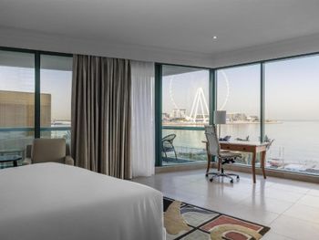 Из номеров отеля Hilton Dubai Jumeirah открывается частичный или полный вид на море и колесо обозрения Айн Дубай. К услугам гостей номера с французскими окнами и отделанная мрамором ванная комната с роскошными туалетно-косметическими принадлежностями.