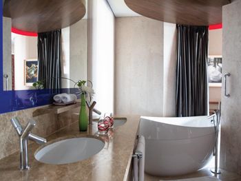 Overlooking the iconic Dubai Creek, The Creekside Hotel offers contemporary accommodations featuring two outdoor pools, a state-of-the-art gym The Aviation Club, a relaxing spa, and eight distinctive restaurants serving a variety of international cuisines, including kosher options.