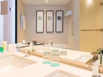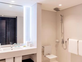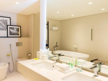 Не понравилось: Нам дали, как мне кажется, худший по расположению номер во всем отеле. Если будут предлагать №123 - отказывайтесь не глядя. Во-первых, он на 1 этаже. Во-вторых, из него виден тренажерный зал, кусок улицы, какой-то подсобный двор отеля, в котором кипели ремонтные работы, и кусочек территории отеля. В-третьих, 2 ночи из 4-х было шумно: из какого-то бара доносилась громкая ритмичная музыка, которая мешала спать. Мы не стали просить заменить номер, так как только 4 дня были в Дубае, но осадок остался.