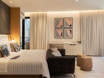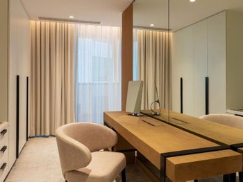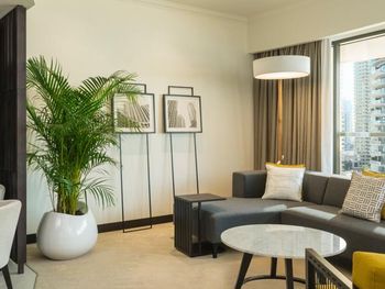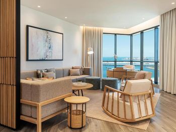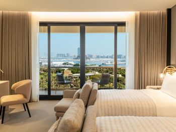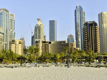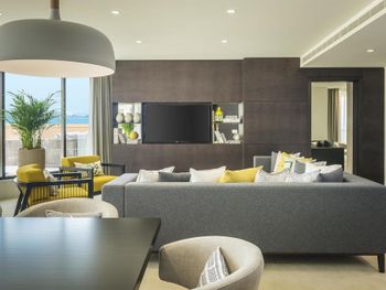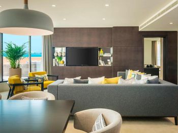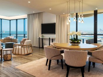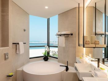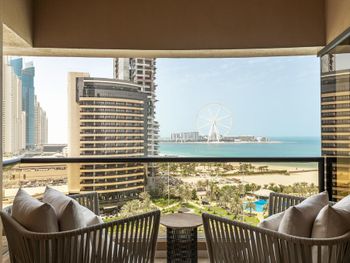 Плюсы: Отель отличный, для спокойного семейного отдыха! Персонал на уровне! Номер большой, в спокойных тонах с 2 телевизорами (хотя мы их и не смотрели))). Уборка каждый день. Пляж по лучше чем на пальме. Месторасположение отличное, рядом прогулочные улицы jbr, marina. Твердая 5.