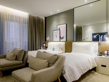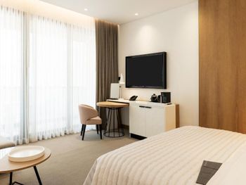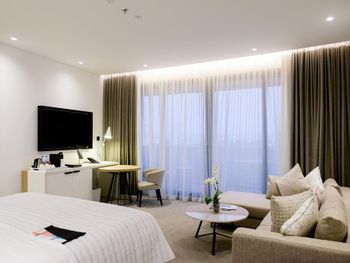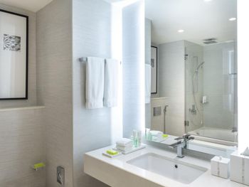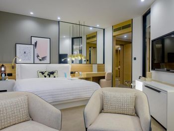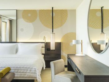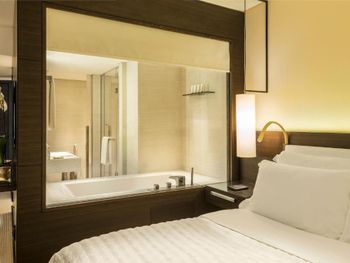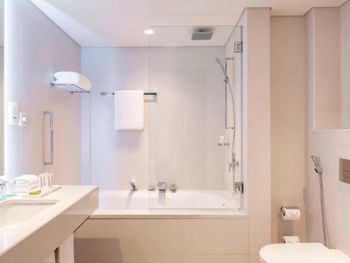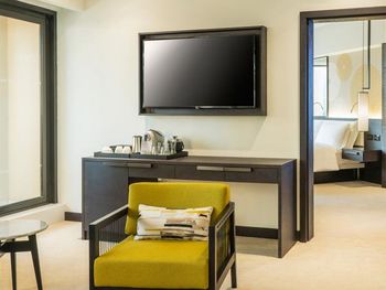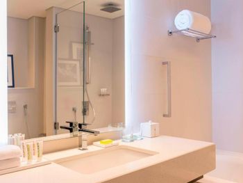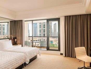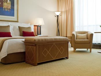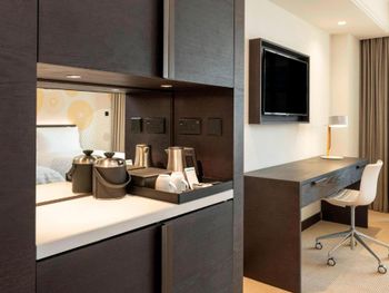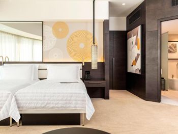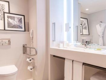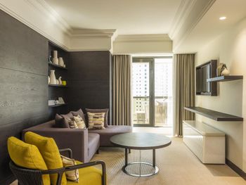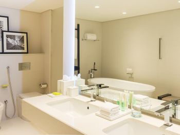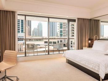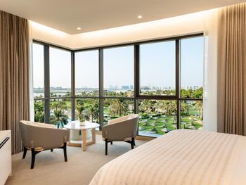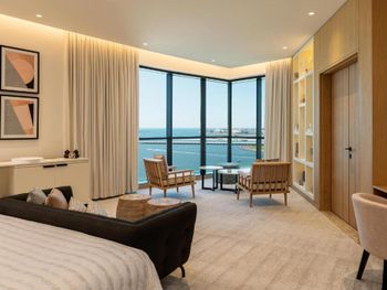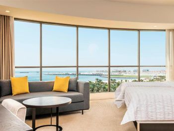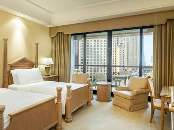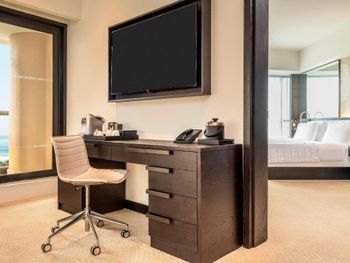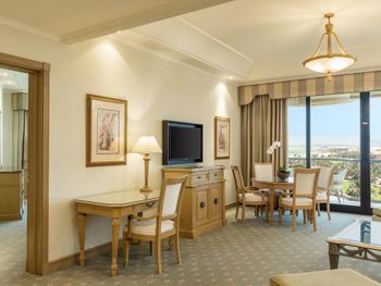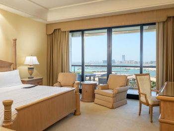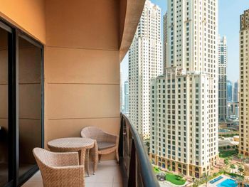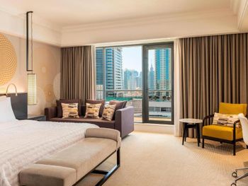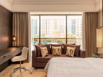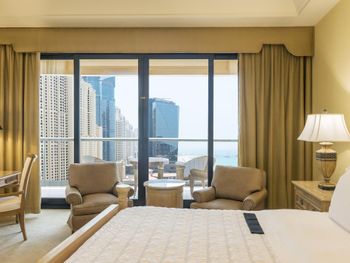 В числе удобств просторных номеров курортного спа-отеля Le Royal Meridien Beach Dubai — ЖК-телевизор с экраном диагональю 32 дюйма, кондиционер, балкон и мини-бар.