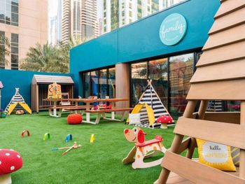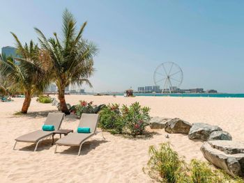 Плюсы: Прекрасный отель для любителей спокойного отдыха, без шума, тусовок и суеты. Огромная зелёная ухоженная территория отеля с пальмами, кустами, цветами, газоном. Широкий пляж с мягким песочком и пологим входом, красивый вид на Dubai Eye, шикарный закат. 3 разных бассейна с большим количеством лежаков и отличным сервисом. Питание хорошее, все вкусно , но каждый день один и тот же ассортимент. Уборка качественная, ежедневная . Рекомендую брать номер с видом на море- вид стоит того.У отеля хорошее расположение, есть где прогуляться вечером. Для детей есть kids club , работают до 18:00.