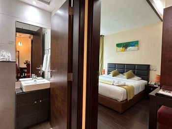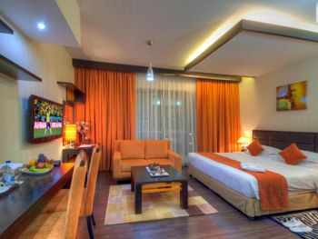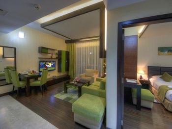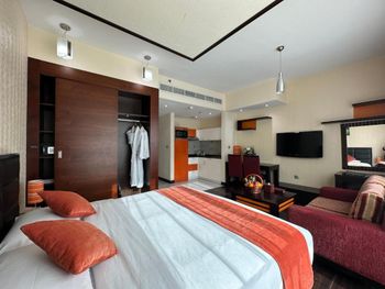Плюсы: Отель отличный! Мы пришли в 13:00 и нас сразу заселили в уютную комнату, а по стандарту должны с 14:00. Комната отличная, с кондиционером, с видом в город , очень завораживает! В отеле есть бассейн, тренажёрный зал, сауна, парилка. Есть бесплатный трансфер в пляж, в торговый центр. Персонал очень вежливый, знают разные языки, в том числе русский, казахский.