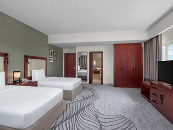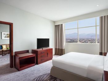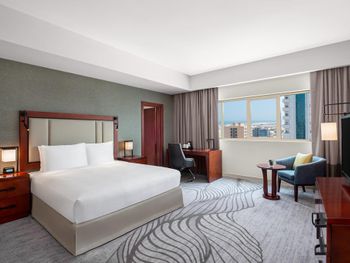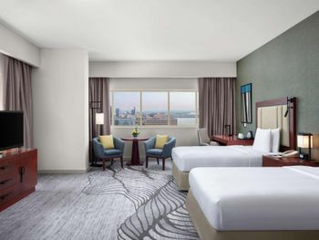 Гостям предоставляются элегантные номера и люксы, а также бесплатная частная парковка. Номера отеля Doubletree Ras Al Khaimah оснащены кондиционером и 42-дюймовым телевизором с плоским экраном. Гостиная зона обставлена современной мебелью. По запросу осуществляется доставка еды и напитков в номер.