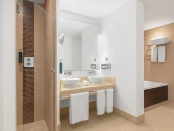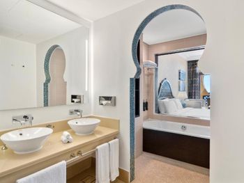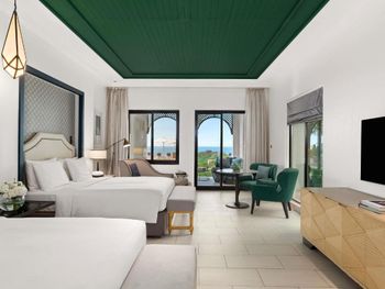 В курортном отеле Rixos Al Mairid Ras Al Khaimah предоставляется бесплатный Wi-Fi. В число стандартных удобств входит мини-бар, телевизор с плоским экраном, французские окна и постельные принадлежности. Из окон открывается вид на город или сад. В собственных ванных комнатах установлена ванна.