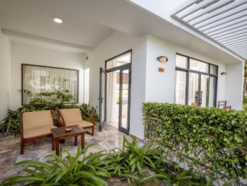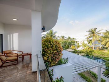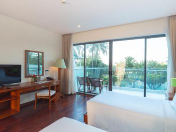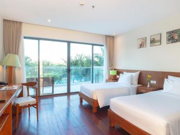Кто планирует посещение с октября по март, не надейтесь искупаться в море. В это время не сезон. Были в декабре, пришлось ездить в бухту на платный пляж в Нячанге. Зеленая территория отеля, свой небольшой аквапарк.