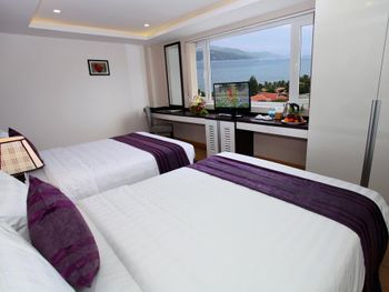 Не понравилось: У номера вроде как есть балкон, точнее название от него. Глубина балкона 25 см, выйти на него нельзя, но можно натянуть веревку для сушки одежды. Окна на стены соседнего отеля на расстоянии 15 метров. Уборка каждый день, но поверхностная, под тумбочками и в углах не мыли наверное год. Всего один стул в семейном номере, приходилось сидеть на кроватях.