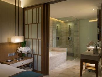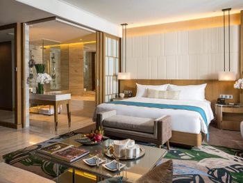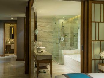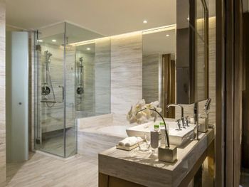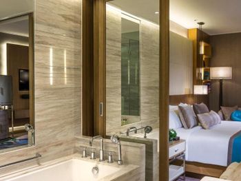 Elegantly furnished with earth-tone décor and wooden furnishings, the luxurious air-conditioned rooms and suites include a balcony, seating area, mini-bar and a flat-screen TV with satellite channels. En suite marble bathroom comes with a bathtub, separate shower and bathrobes. Complimentary tea/coffee making facilities are also provided daily.