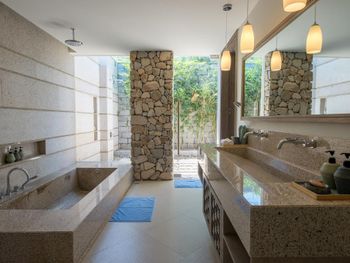 Во всех просторных и роскошных виллах с живописным видом на океан есть кондиционер, бесплатный Wi-Fi, гамаки и комфортабельные гостиные зоны. На некоторых виллах имеется собственный бассейн. В распоряжении гостей душевые в помещении и на открытом воздухе, а также ванна.