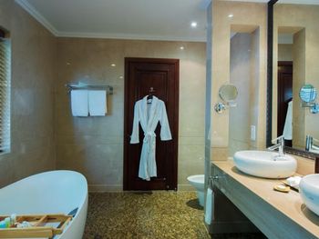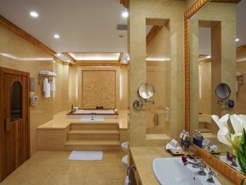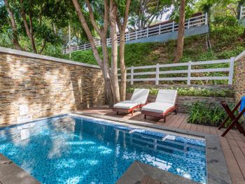 В номере был бассейн личный, но вода в нем была мутная и холодная, сказали почистят. За 2 дня никто так и не почистил, хотя обещали (и я напоминал). Полотенец для бассейна тоже не было. Ощущение, что он для вида, и особо о его использовании гостями никто не беспокоится (ну типа все равно холодная вода - купаться не будут). Я в итоге думаю, лучше было бы взять номер около большого бассейна, было бы дешевле и лучше.