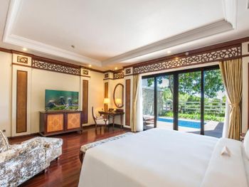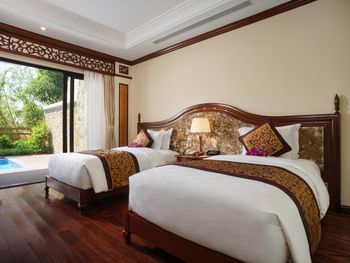 Просторные виллы, обставленные классической деревянной мебелью, оформлены в традиционном вьетнамском стиле. На виллах имеется мини-бассейн, собственный сад, балкон с видом на море, бесплатный Wi-Fi, ЖК-телевизор с 46-дюймовым экраном, а также роскошные туалетно-косметические принадлежности, в том числе морская соль и свечи.