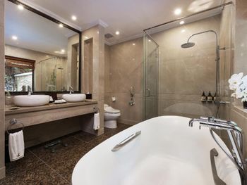 Плюсы: Все было великолепно. Вилла чудесная, нам заменили нашу одноэтажную виллу на двухэтажную! Причем без нашей просьбы. Очень чисто, чудесная территория, бассейн, пляж - все замечательно. Очень хороший и разнообразный завтрак. А массаж, что входил в стоимость номера - просто божественный! Спасибо всем сотрудникам данного отеля.