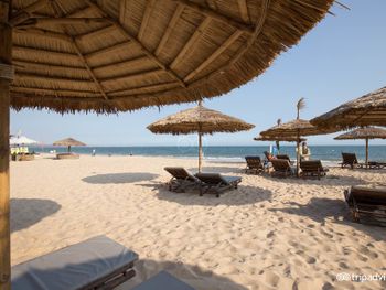 Не понравилось: Отель находится на первой линии, но самим пляжем пользоваться невозможно. На берегу набросаны мешки, видимо это защита от больших волн. Я этот момент не предусмотрела, поэтому нам пришлось весь отдых провести у бассейна. А когда ты специально едешь в отель на первой линии все таки хочется побыть на берегу моря, а не у маленького бассейна с хлоркой. Из-за этого вспечатления все таки смазанные, именно как вариант пляжного отдыха я бы его не стала рекомендовать. К отзыву прикладываю фото пляжа.