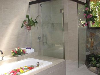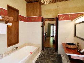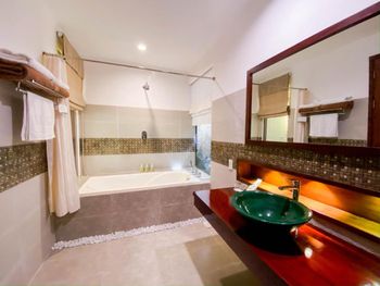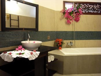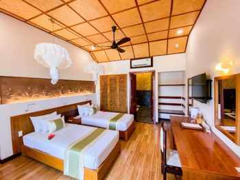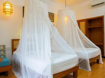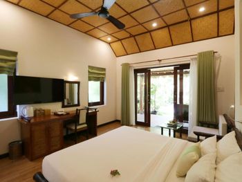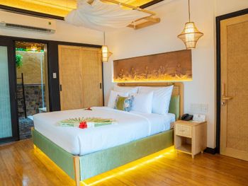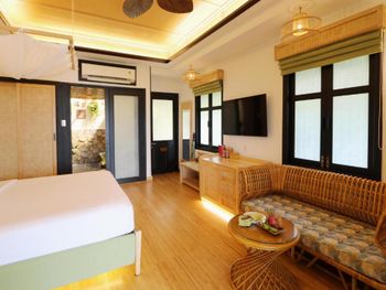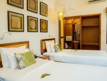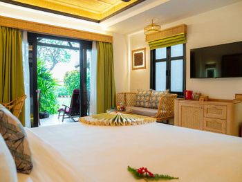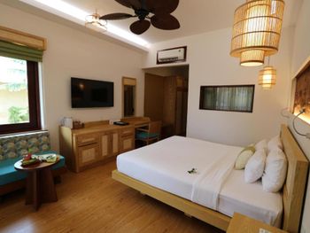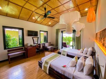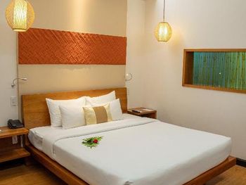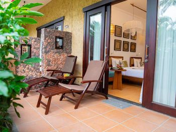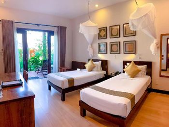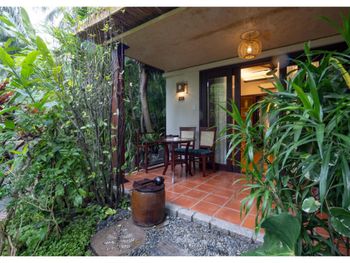 Плюсы: Территория у отеля очень ухоженная, красивая, тихая, как будто живешь в джунглях. Мы жили в маленьком домике на 2м этаже, в номере был большой балкон. В номерах также чисто, нет насекомых, что очень нетипично для Азии и это огромный плюс. Завтрак довольно разнообразный, можно найти варианты еды для детей, которым не привычна азиатская еда. При отеле работает ресторан, в котором вкусно готовят, можно разок остаться на ужин. Отель помог организорвать трансфер, из аэропорта нас забрала очень комфортная машина.