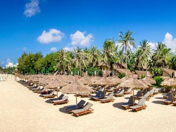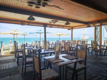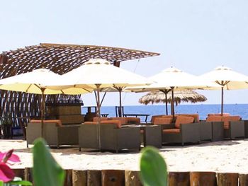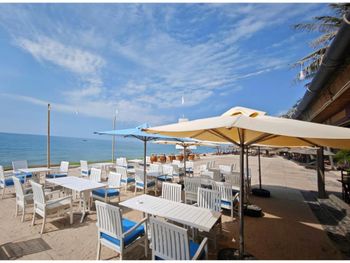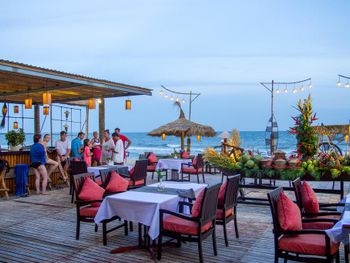 На пляже и в ресторане, даже при полной заполненности, всегда есть свободные лежаки и свободные столики, никакой толкучки.